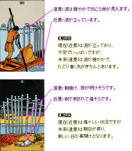 一枚のカードに現在、未来が描かれていますから、一枚引きの占いでも現在、未来を啓示していることになります。